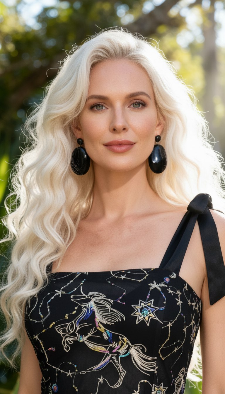- Hand-embroidered celestial motifs shimmer across the fabric